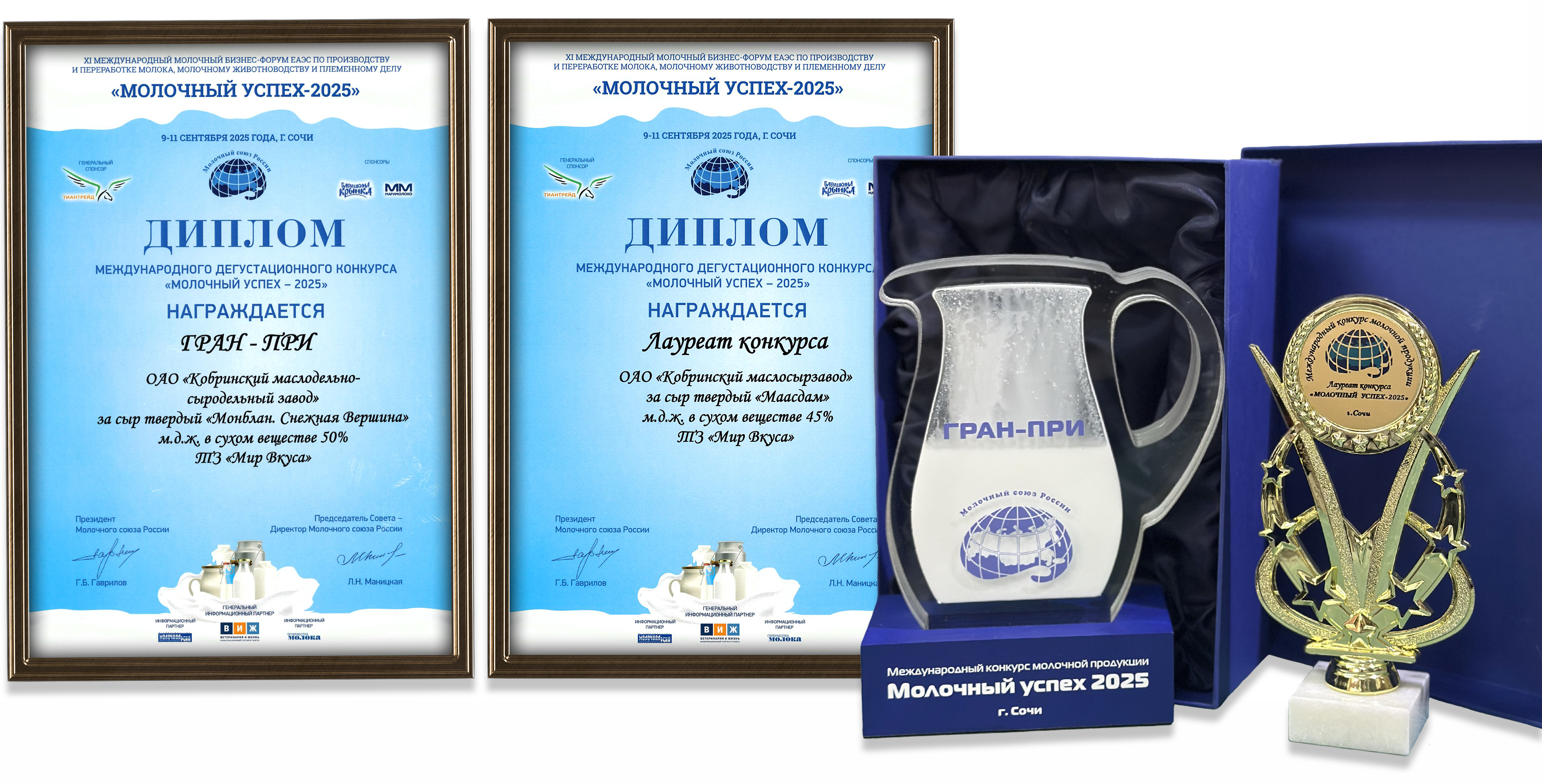 ХІ міжнародны малочны бізнес-форум ЕАЭС» малочны поспех – 2025", які адбыўся ў горадзе Сочы, сабраў лепшых вытворцаў Расіі і Беларусі. Па выніках конкурсу прадукцыя ААТ» Кобрынскі МСЗ»заваявала вышэйшыя ўзнагароды"!
